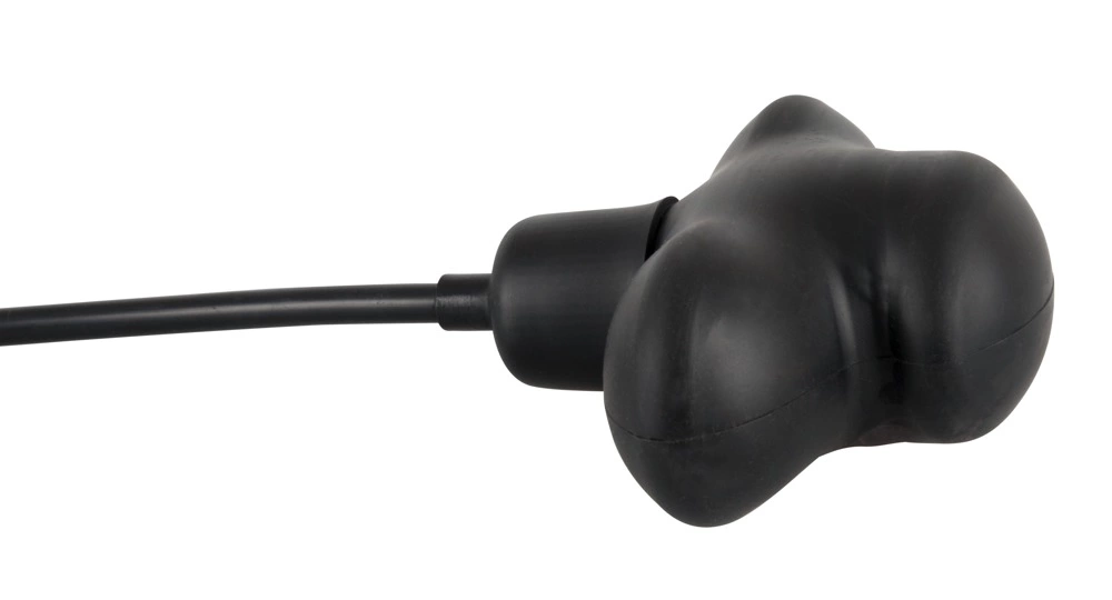 Gag na napuhavanje s loptom na pumpu. cca. 12 x 5,5 cm. Crna. Materijal čepa: silikon. Materijal lopte pumpe: lateks napravljen od prirodnog gumenog lateksa koji može izazvati alergije.
