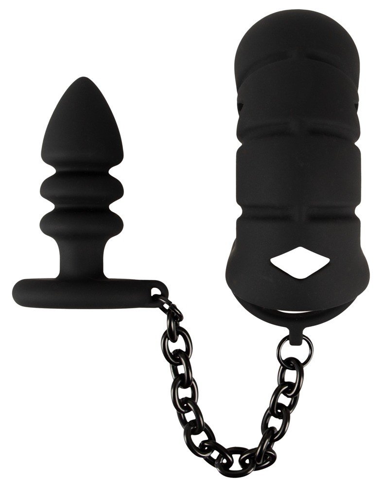 Kavez za penis s prstenom i analnim čepom Black Velvets.
