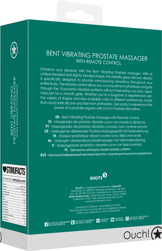 Joj! by Shots Bent vibrirajući masažer prostate s daljinskim upravljačem – metalik zelena