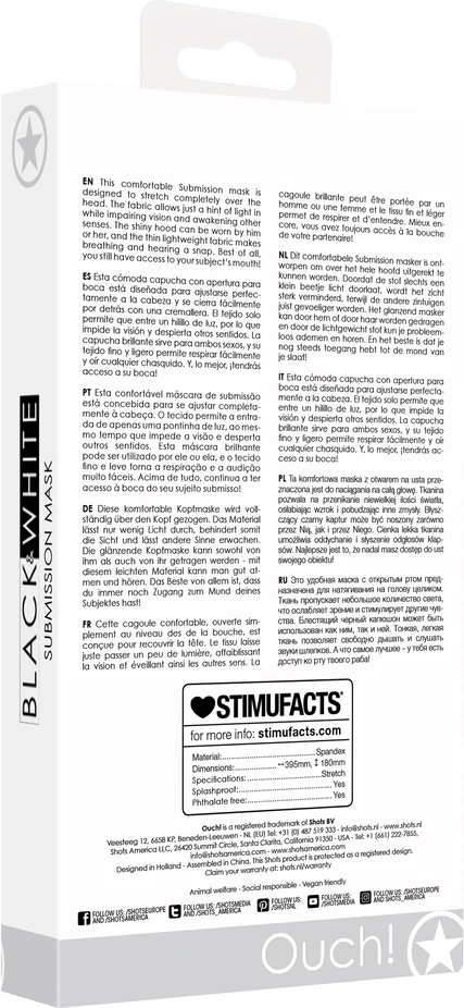 Ova udobna Submission maska ​​dizajnirana je da se u potpunosti rasteže preko glave.