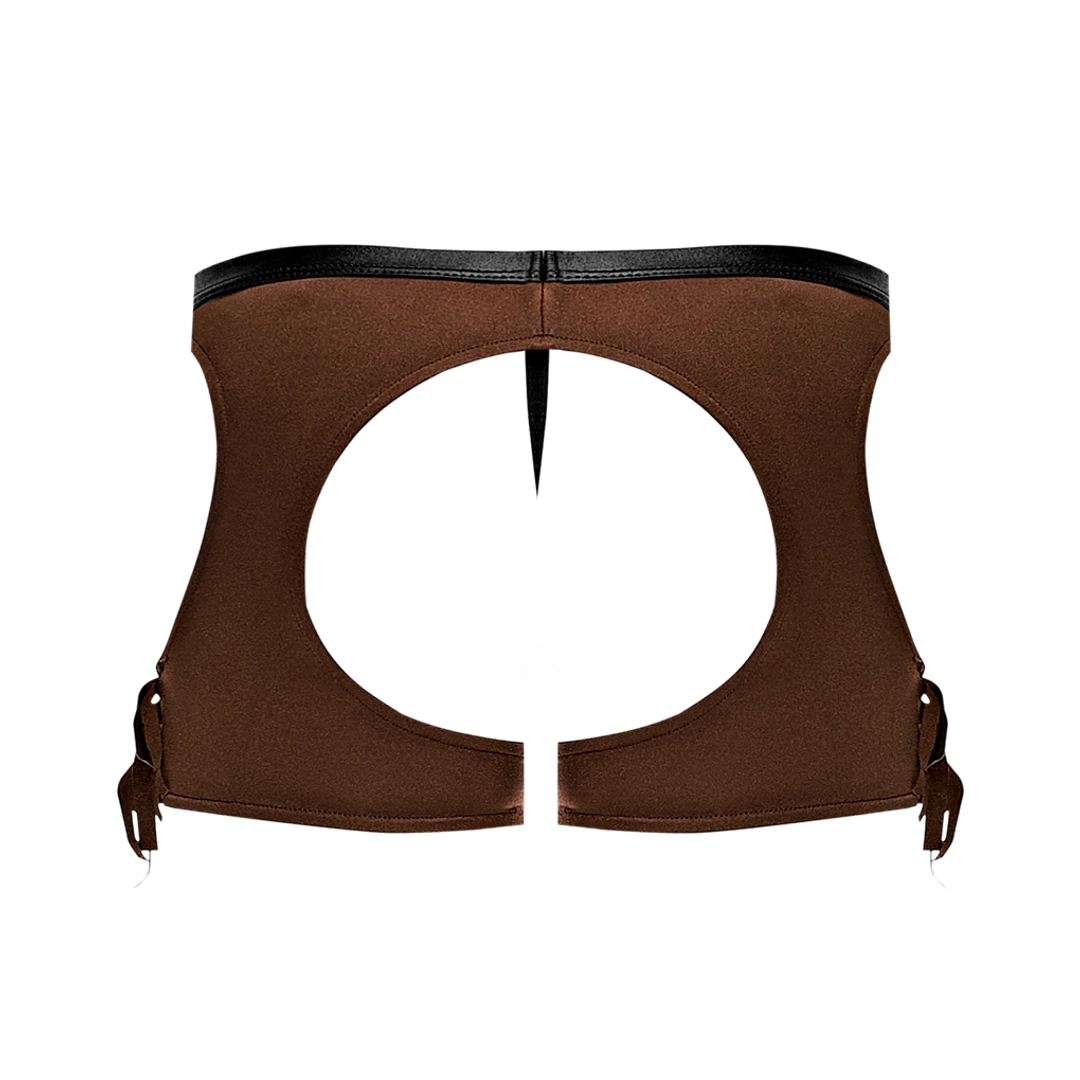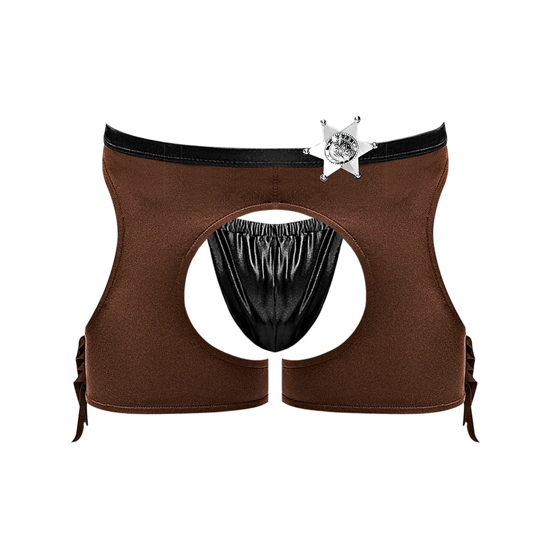 Iz kolekcije kostima tvrtke Male Power, ovaj stil uključuje: trodijelni set koji sadrži ukrasnu maramicu, bedž na štipaljku, kratke čahure s pojasom i remen za poziranje s udobnom torbicom, elastičnim pojasom i g-stringom na leđima.