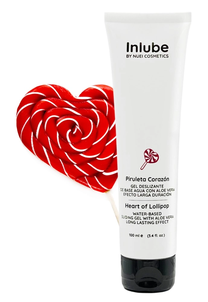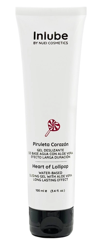 Lubrikant Inlube Sliding Gel Heart na bazi vode. Lollipop iz NUEI s hranjivom aloe verom i slatkom aromom lizalice. Svilenkasta tekstura s ekskluzivnim dugotrajnim učinkom.