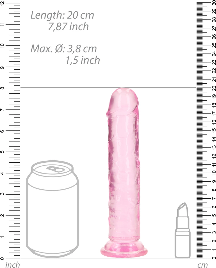 • Ovaj model ima 7,9” (20 cm) visok uključujući vakuumsku čašicu, ima umetnutu duljinu od 7,1” (18 cm) i ima opseg od 1,5” (3,8 cm).
