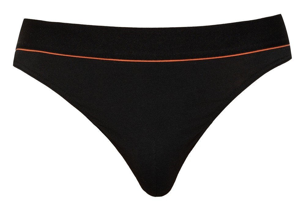 Crne tange Svenjoyment s crvenom prugom. Vrlo udobno. Visoka udobnost nošenja zahvaljujući savršenom pristajanju i kvaliteti elastičnosti organskog pamuka – Oeko-Tex certifikat.