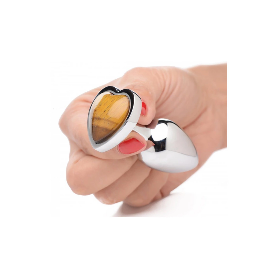 XR Brands Tiger Eye Heart – analni čep – Srednji